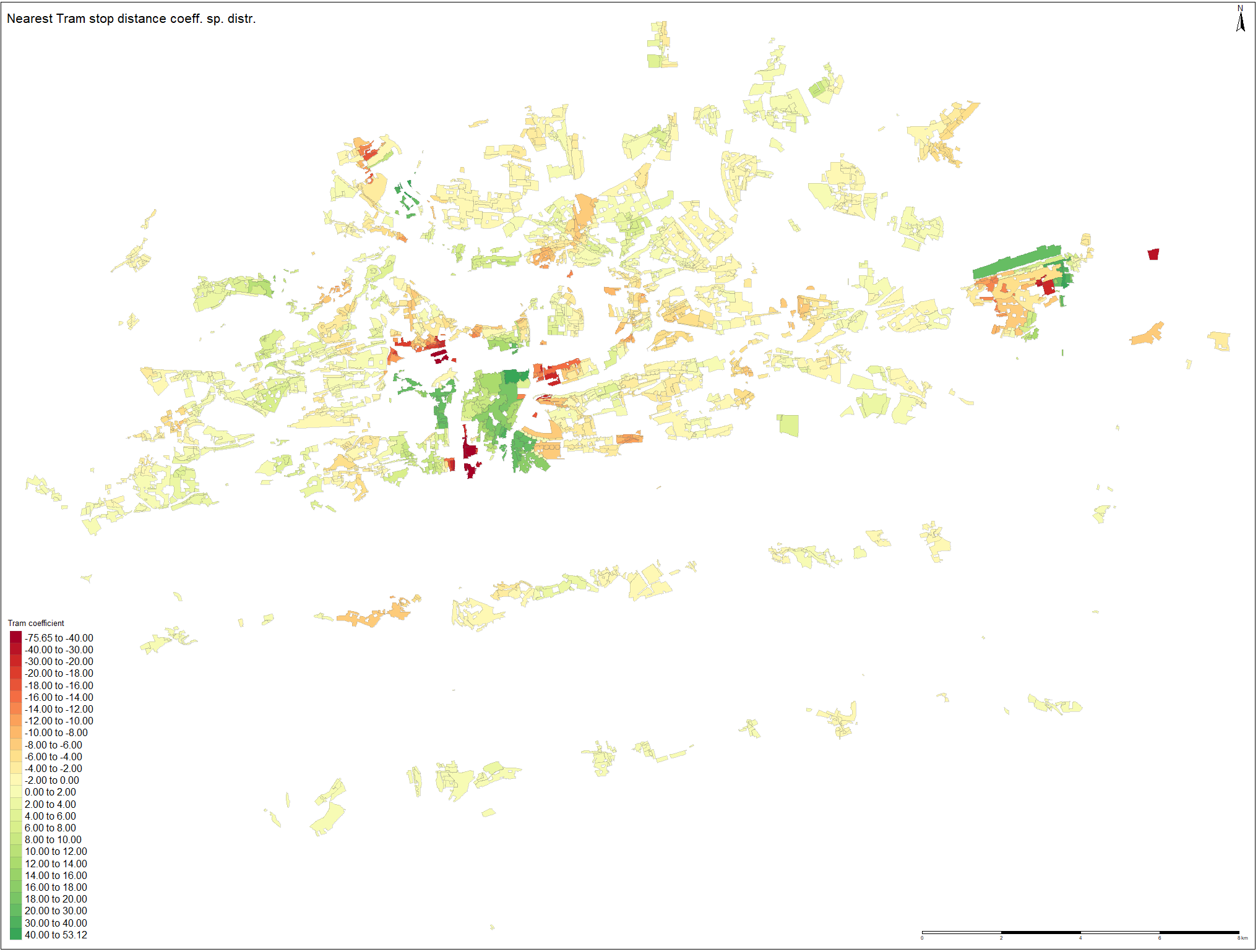 - Spatial distribution of moran statistics for nearest tram stop distance